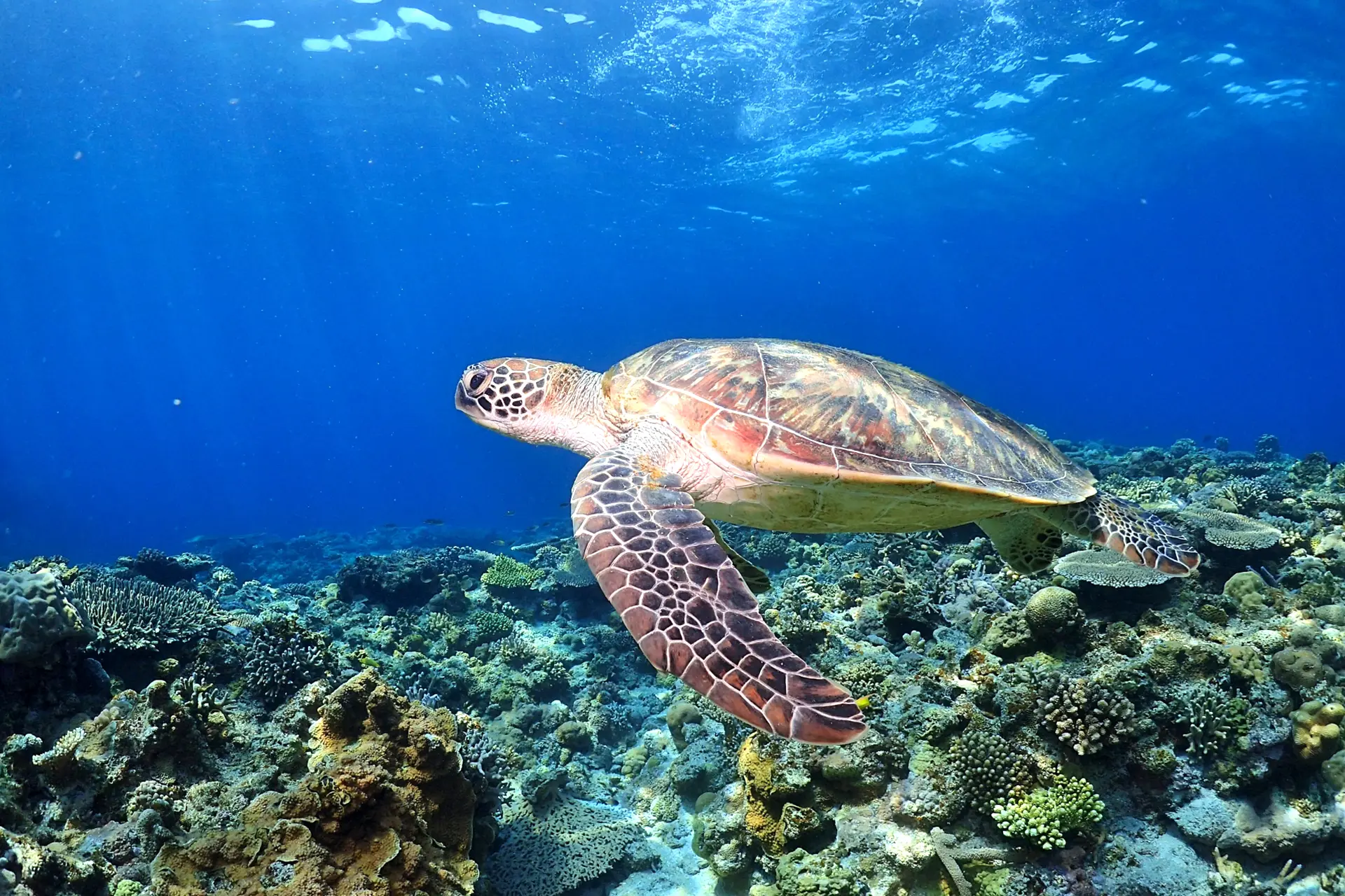 珊瑚観察、熱帯魚餌付けもでき初心者の方、小さなお子様から安心してご参加頂けます。